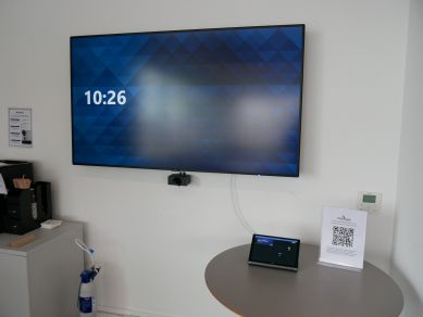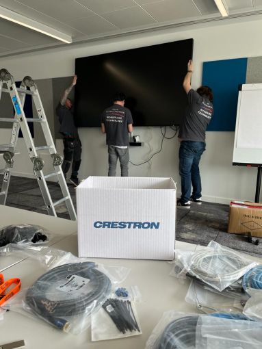 Visually Connected set up a proof of concept in one of the medium-sized rooms which included the Crestron Flex Teams solution, Poly Studio audio video bar, and an Air Server for wireless content sharing.